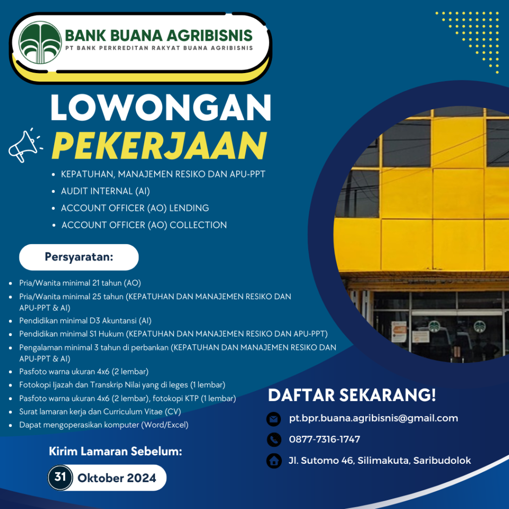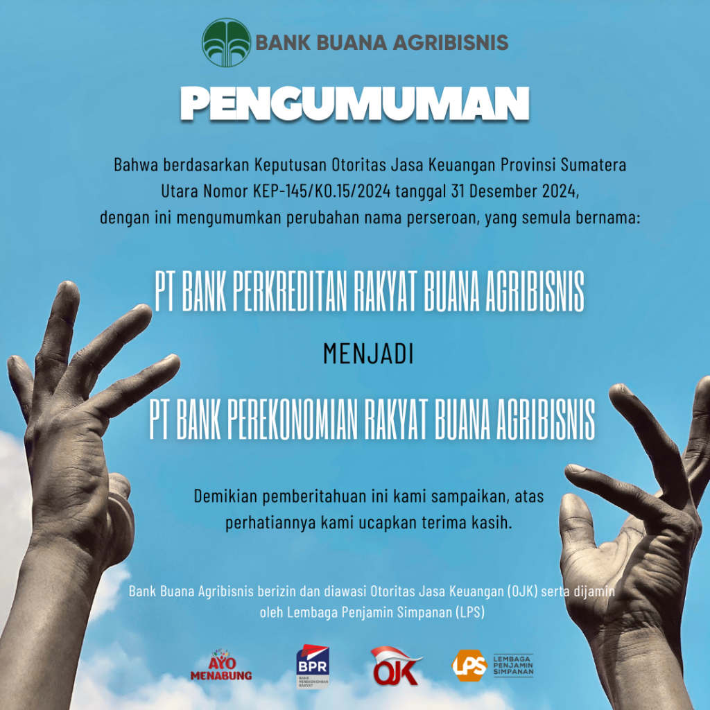 Sebagai bentuk komitmen kuat Bank Buana Agribisnis dalam rangka percepatan peningkatan literasi sains keuangan masyarakat termasuk petani dan pelaku UMKM. Kegiatan literasi ini merupakan salah satu bahagian dari sasaran prioritas penerapan Strategi Nasional Literasi Keuangan Indonesia ( SNLKI) 2021-2025. Acara digelar di Kantor Pusat Bank Buana Agribisnis Jalan Sutomo No.48 Saribudolok, Simalungun 22 Mei 2024.