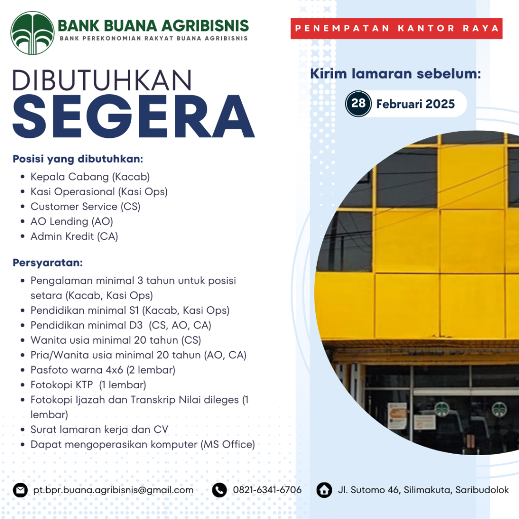 Bank Buana Agribisnis secara resmi membuka Kantor Cabang Raya dalam sebuah acara peresmian yang berlangsung khidmat dan meriah pada hari Jumat 12 September 2025. Acara ini menjadi tonggak penting dalam perjalanan ekspansi dan komitmen Bank Buana untuk terus memperluas layanan serta mendekatkan diri kepada nasabah dan masyarakat. Peresmian ini dihadiri oleh Pemegang saham, Dewan Komisaris,